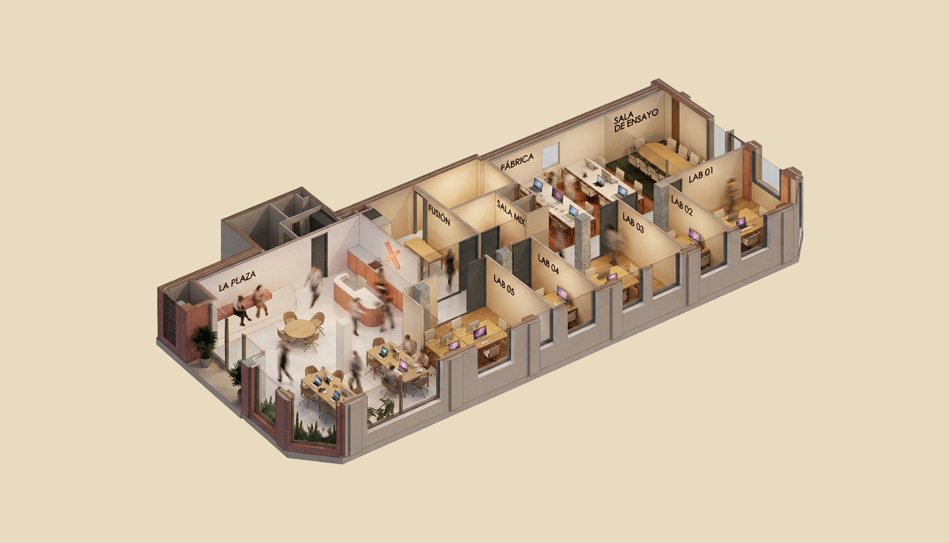 Con zonas para enfocarte, SALAS donde reunirte, espacios para conversar y una PLAZA interior donde pasan cosas: reuniones informales, eventos, charlas y encuentros que no estaban en la agenda… pero suman.